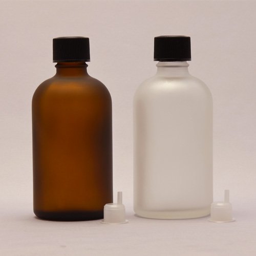 100ml フロスト加工 ガラスボトル ドロッパー・穴なしキャップ付き (茶色)or(半透明)